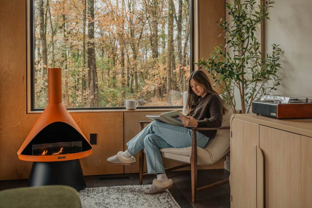 ATLAS Hideaway is a brand new cozy modern cabin tucked away in the woods.
